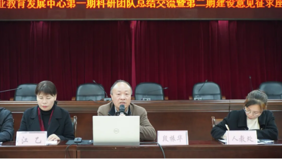 座谈会上,段振华教授以《职业院校科研团队组建与运行机制探讨》为题作专题报告。他结合多年科研管理与团队建设实践经验,围绕职业院校科研团队的分类、组建策略、运行机制及研究方向选择等关键问题展开系统阐述。段教授提出“跨学科融合、产学研协同”的团队建设思路,并深入解析“目标导向、激励驱动”的运行保障机制,为贺州市职业教育发展中心科研团队的建设与优化提供了重要参考。参会教师表示,培训内容针对性强、务实管用,既有理论指导,又具实践路径,对推进科研团队建设具有积极指导意义。